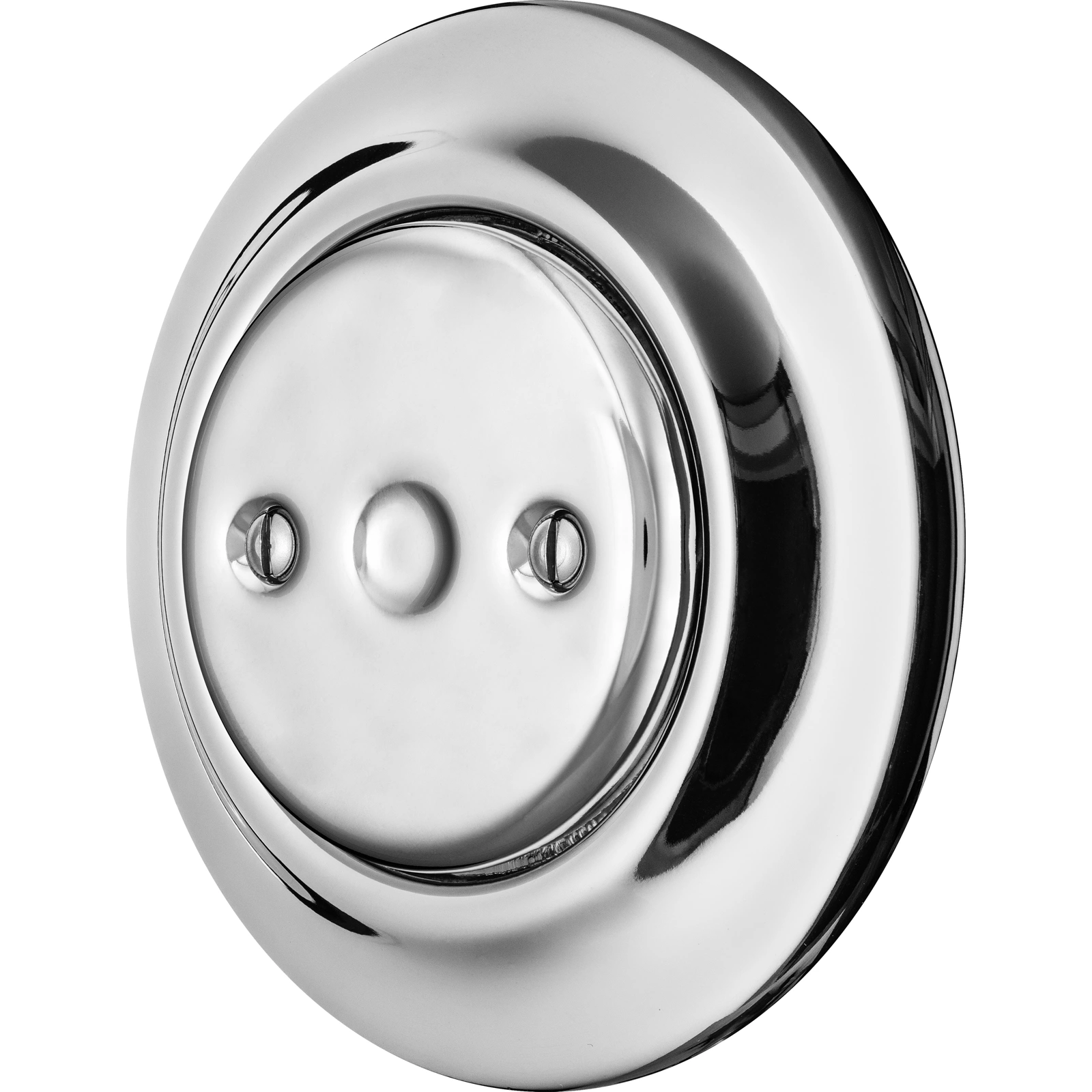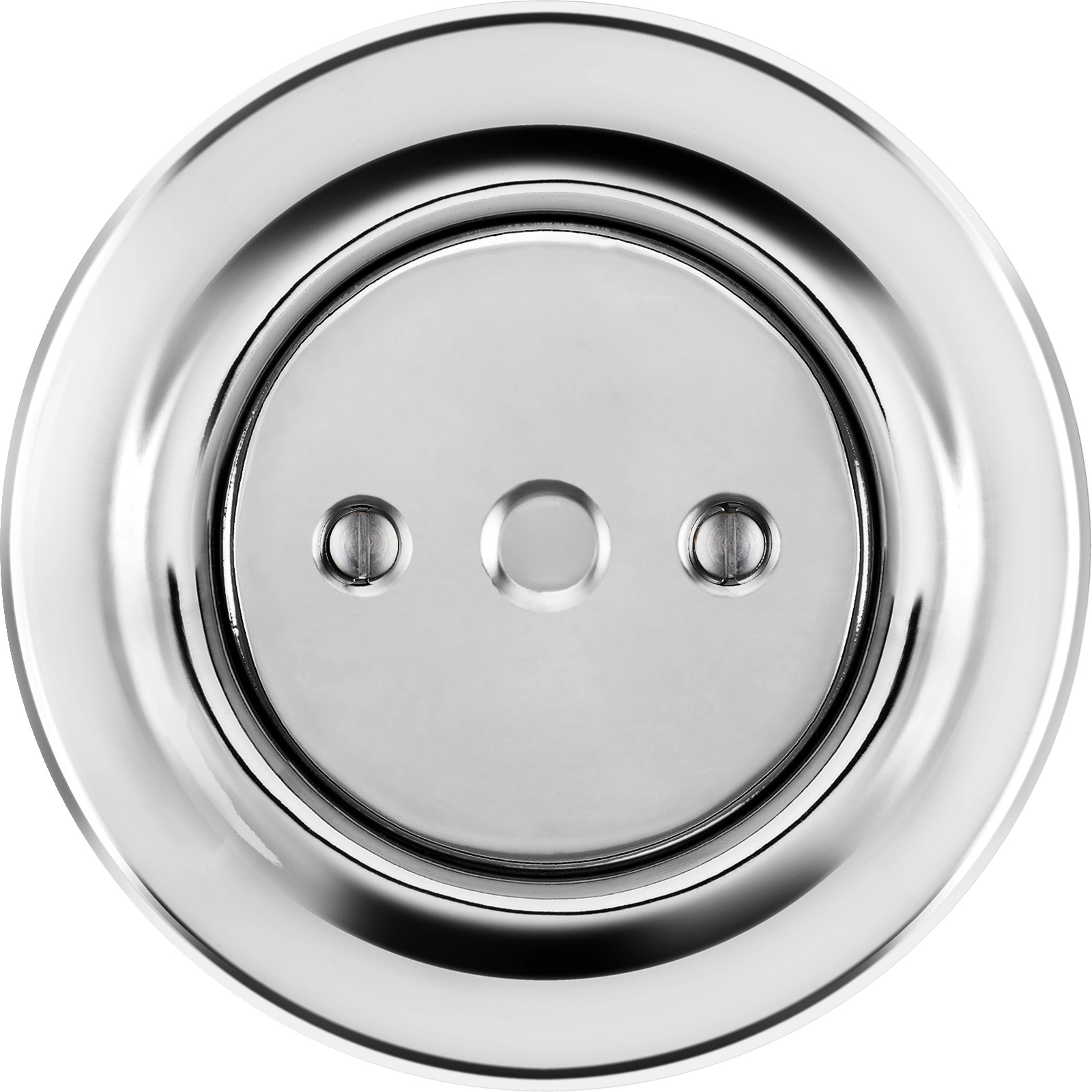Re-designed retro end plug. This one in silver mirror surface. Made of traditional porcelain. Dust resistant. Constant colour and highly abrasion-resistant surface. Enamelled and handmade in top quality. CE conformity certificate. Decorative cover. Guarantee 50 years!