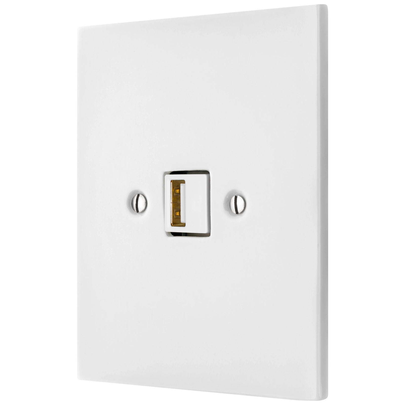 Porcelain USB charger. With glazed surface. In color natural creamy white. With highly durable surface and color stability. CE conformity certificate. Decorative cover. Guarantee 50 years!